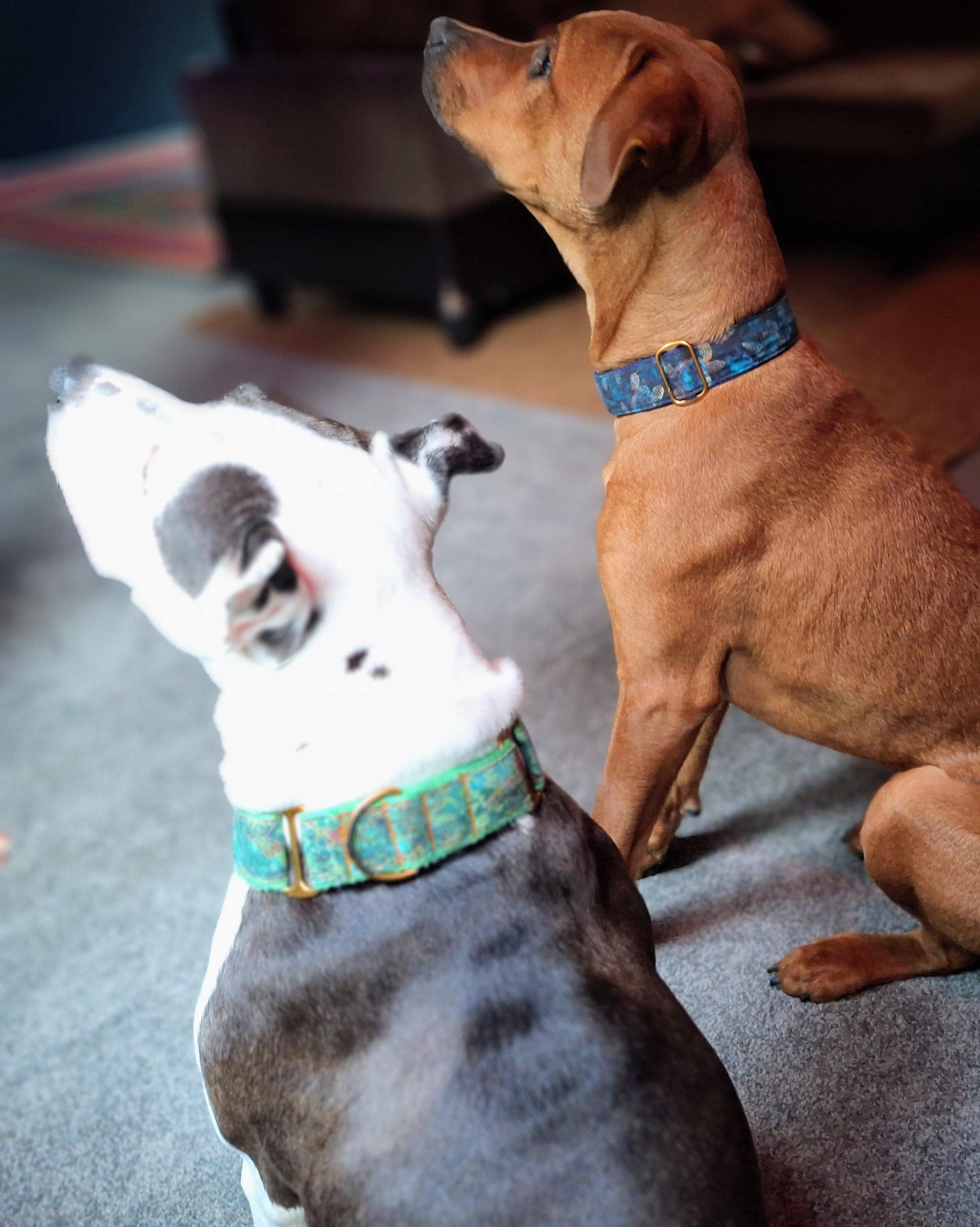 COLLAR WIDTH and BUCKLES: This collar can be made with a plastic side-release buckle in 1”, 1.5”, or 2” widths, just know that the wider collars show more of the pattern and the narrower widths are cropped down to that width. Pro-tip for choosing your collar width: If you are unsure of which width to order your collar, cut a strip of paper to either 1”, 1.5”, or 2” wide and lay it against your puppy’s neck and see how it looks. It doesn’t have to be long enough to go all the way around the neck, just to get a feel for the collar width.