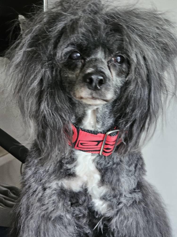 COLLAR WIDTH and BUCKLES: This collar can be made with a plastic or metal side-release buckle in 1”, 1.5”, or 2” widths, just know that the wider collars show more of the pattern and the narrower widths have the pattern cropped down to that width. Pro-tip for choosing your collar width: If you are unsure of which width to order your collar, cut a strip of paper to either 1”, 1.5”, or 2” wide and lay it against your puppy’s neck and see how it looks. It doesn’t have to be long enough to go all the way around the neck, just to get a feel for the collar width.
